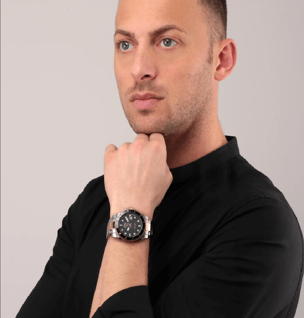 Κάσα: Μαύρο/ροζ χρυσό ανοξείδωτο ατσάλι