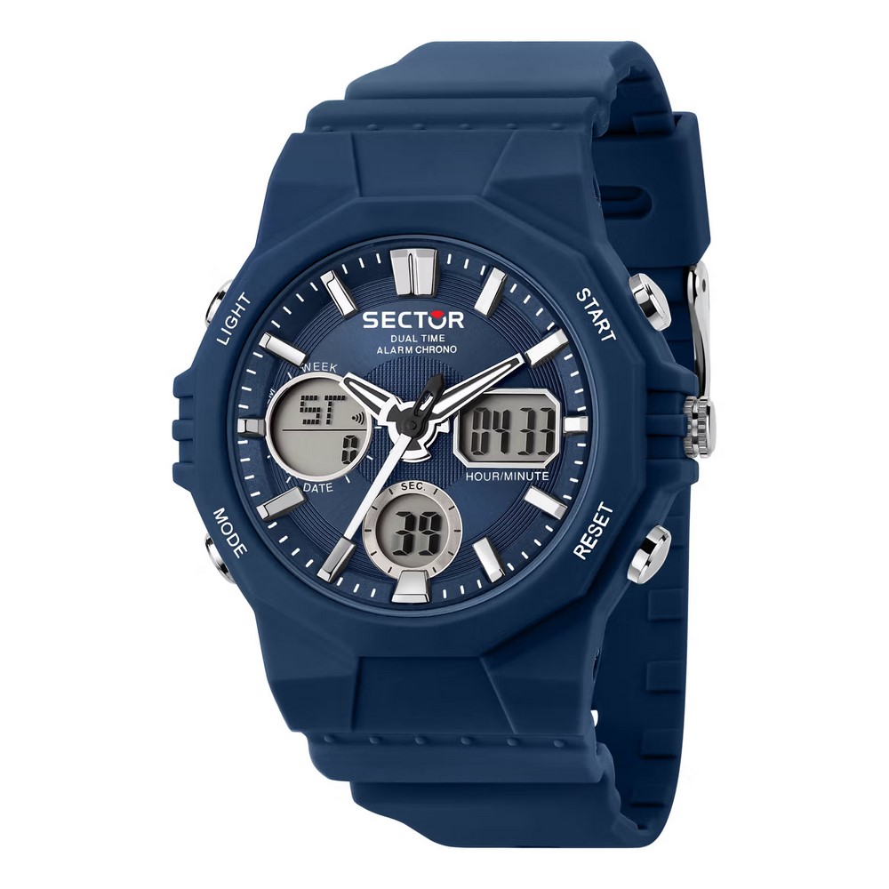 Sector EX-40, Dual Time, Unisex Chronograph Watch, Blue Synthetic Strap R3251238002