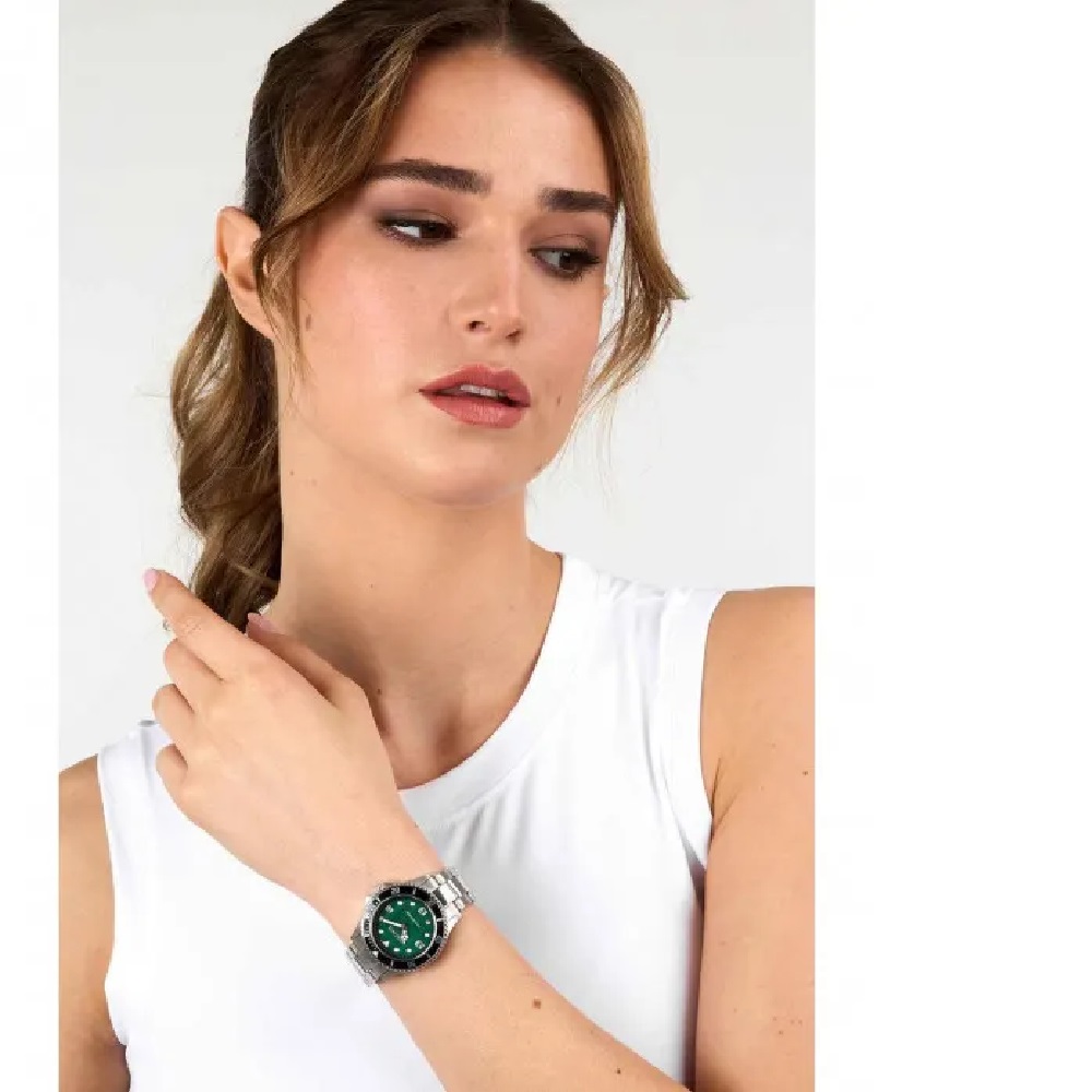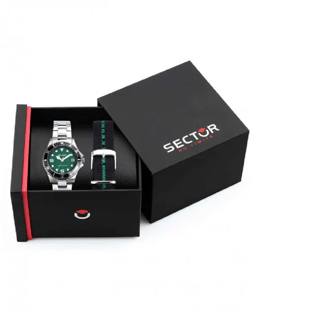 Διατίθεται σε κασετίνα με ένα επιπλέον  δίχρωμο μαύρο / πράσινο  λουράκι υφασμάτινο και εργαλείο τοποθέτησης του.