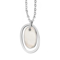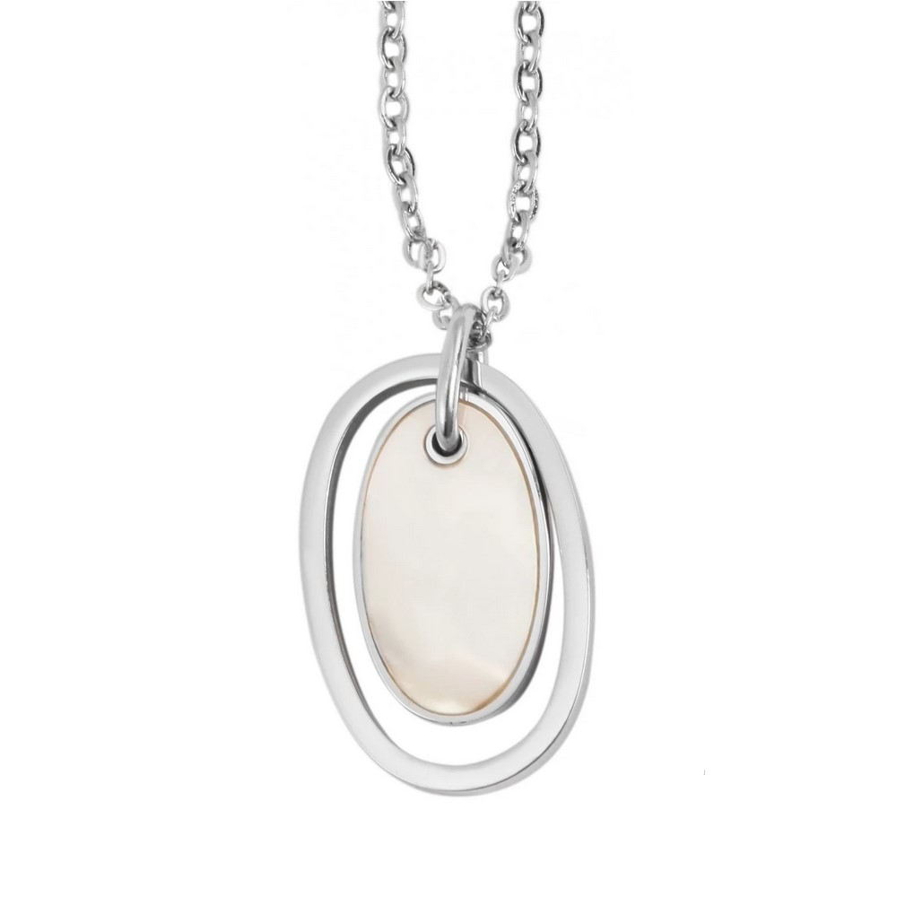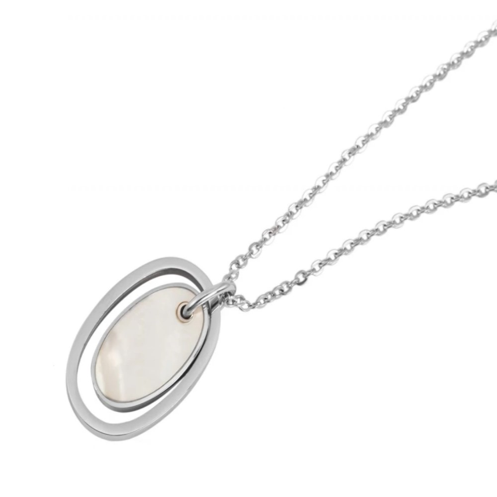 Ατσάλινο γυναικείο κολιέ, σε ασημί χρώμα, με κρεμαστό μοτιφ από λευκό φίλντισι!