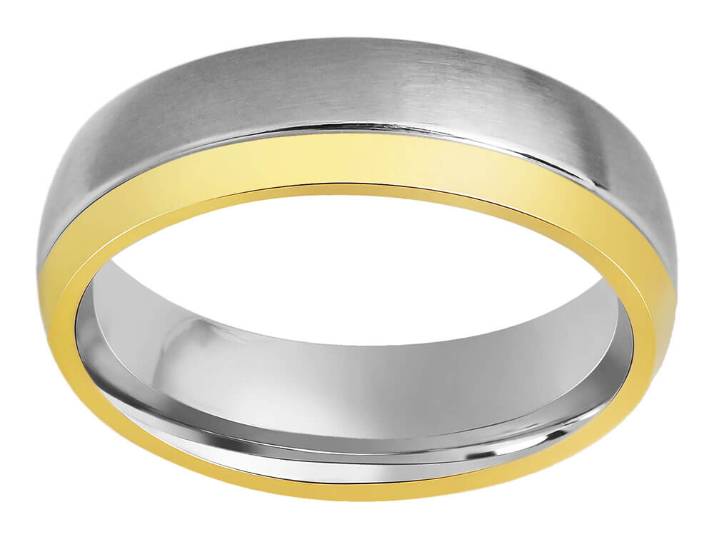 Ανδρική βέρα από ανοξείδωτο ατσάλι, σε ασημί χρώμα με χρυσή λεπτομέρεια.