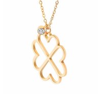 Ατσάλινο γυναικείο κολιέ, σε χρυσαφί χρώμα, με μοτιφ τριφύλλι και λευκή πέτρα!