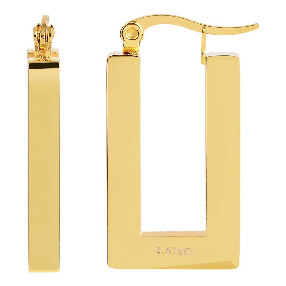 Ατσάλινα γυναικεία σκουλαρίκια, σε χρυσαφί χρώμα και γεωμετρικό σχήμα.