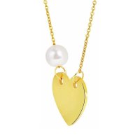 Ατσάλινο γυναικείο κολιέ, σε χρυσαφί χρώμα, με μοτιφ καρδιά και πέρλα!