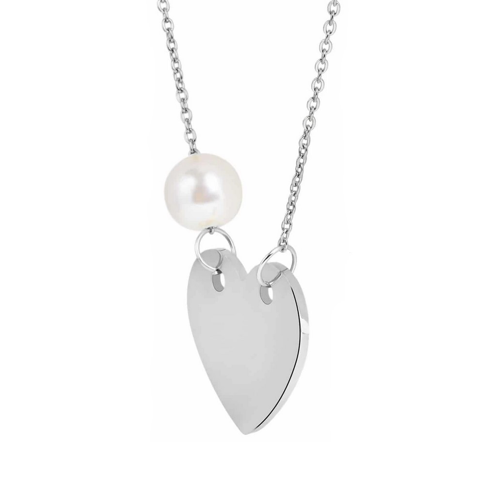 Ατσάλινο γυναικείο κολιέ, σε ασημί χρώμα, με μοτιφ καρδιά και πέρλα!