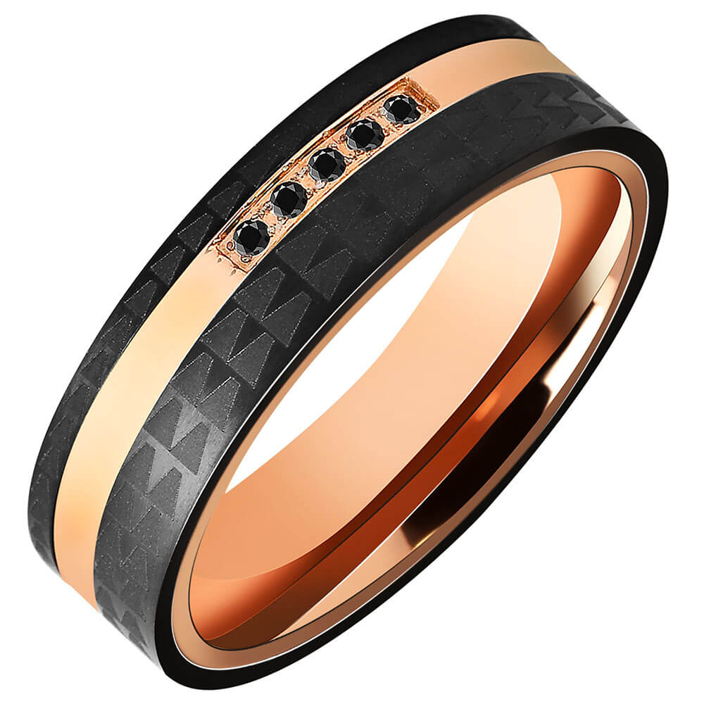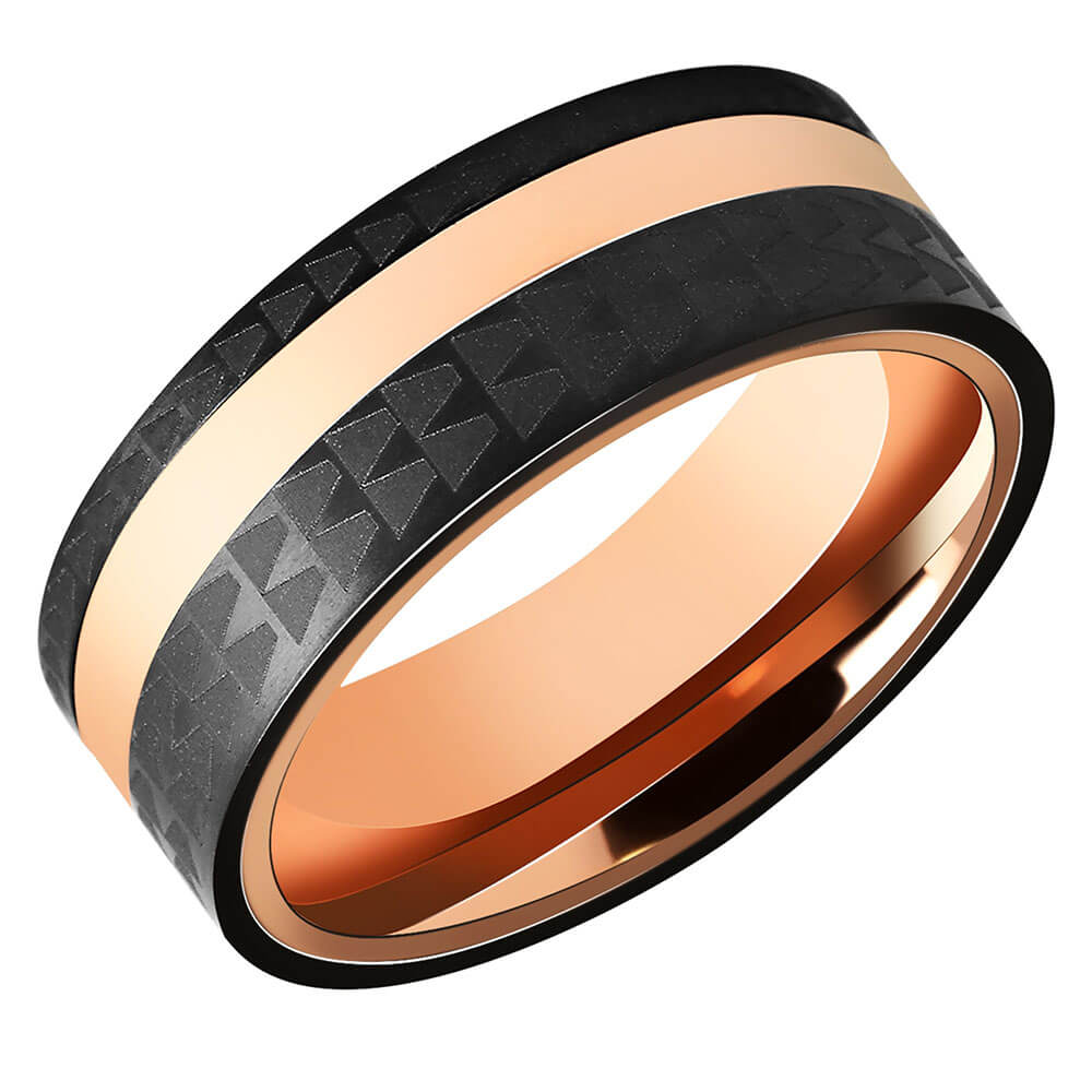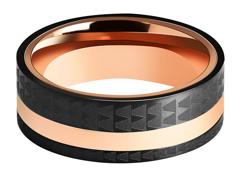 Ανδρική βέρα από ανοξείδωτο ατσάλι, σε ροζ χρυσό και μαύρο χρώμα.