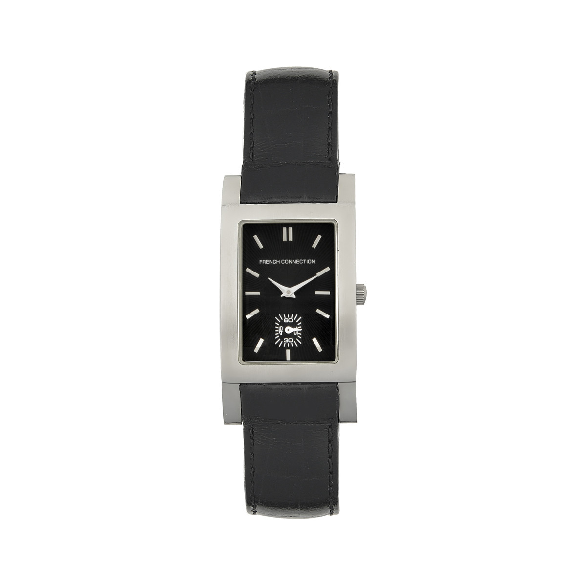 FCUK Cambs Tank Grap, Women's Watch, Black Leather Strap F1V323