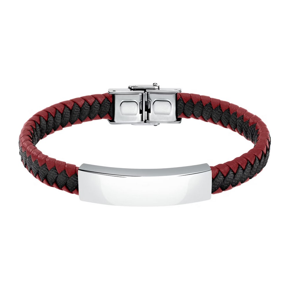 Sector Bandy, Men's Black/Red Recycled Leather - Silver Stainless Steel Bracelet SZV111