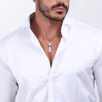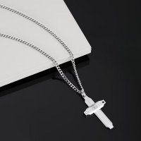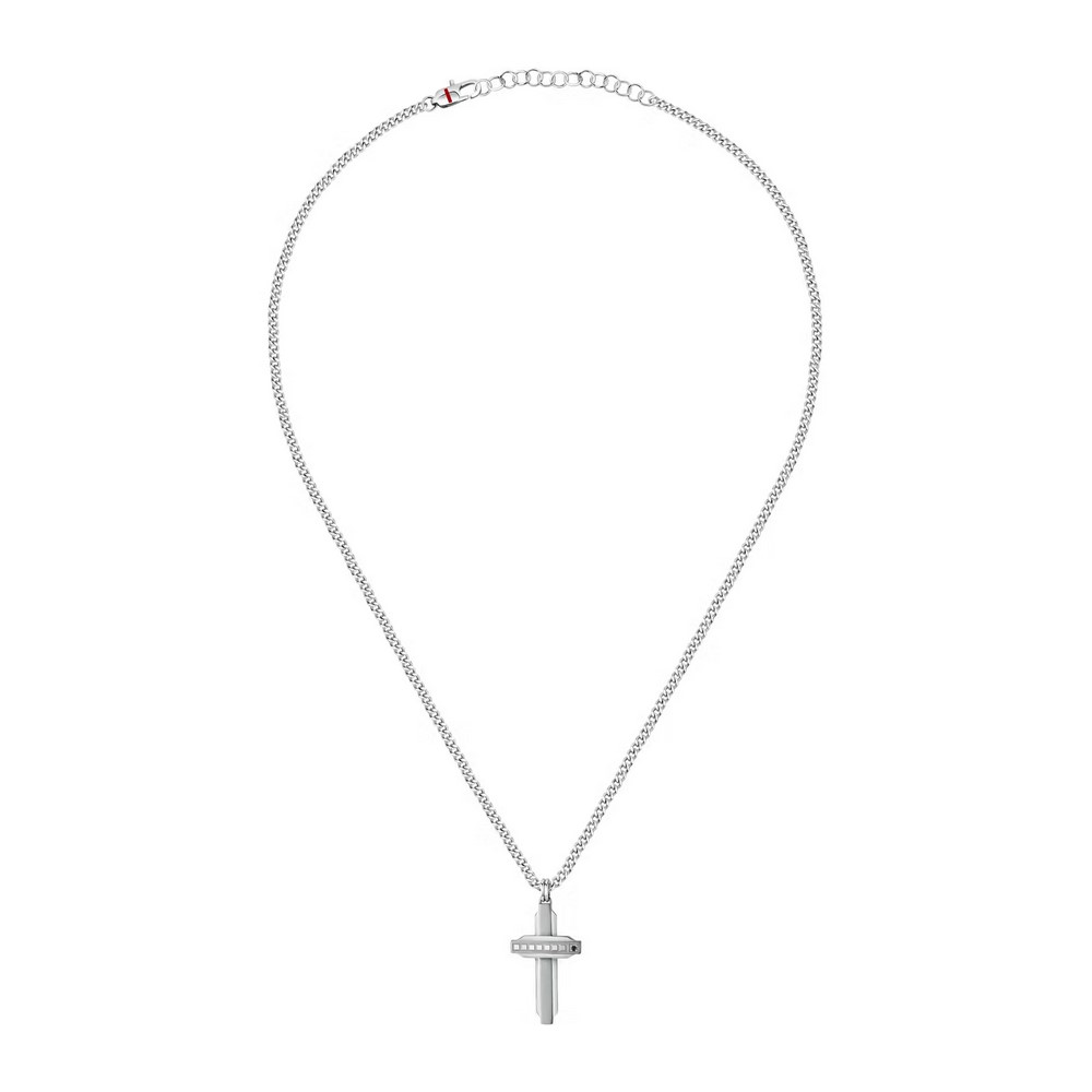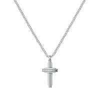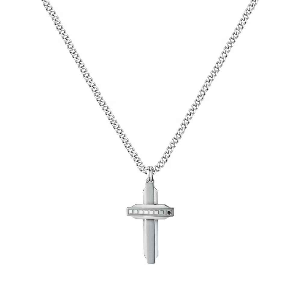 Ανδρικό κολιέ Sector, από ανοξείδωτο ατσάλι σε ασημί χρώμα με μοτιφ σταυρό και μαύρο ζιργκόν.