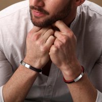 Ανδρικό βραχιόλι Sector, από μαύρο - κόκκινο ανακυκλώσιμο δέρμα και ασημί ανοξείδωτο ατσάλι.