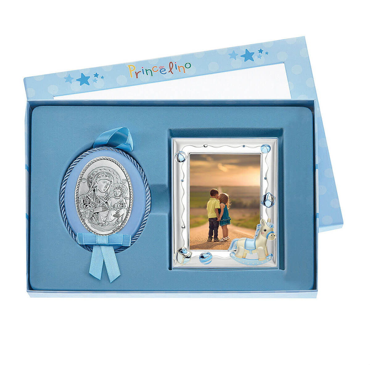 Ασημένιο Παιδικό σετ με Κορνίζα και Παναγίτσα Κούνιας MA/S140-3C