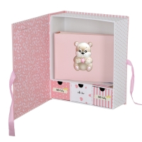 Κουτί παιδικό 25×30 με άλμπουμ, κορνίζα και συρταράκια με σχέδιο αρκουδάκι σε ασήμι 925.