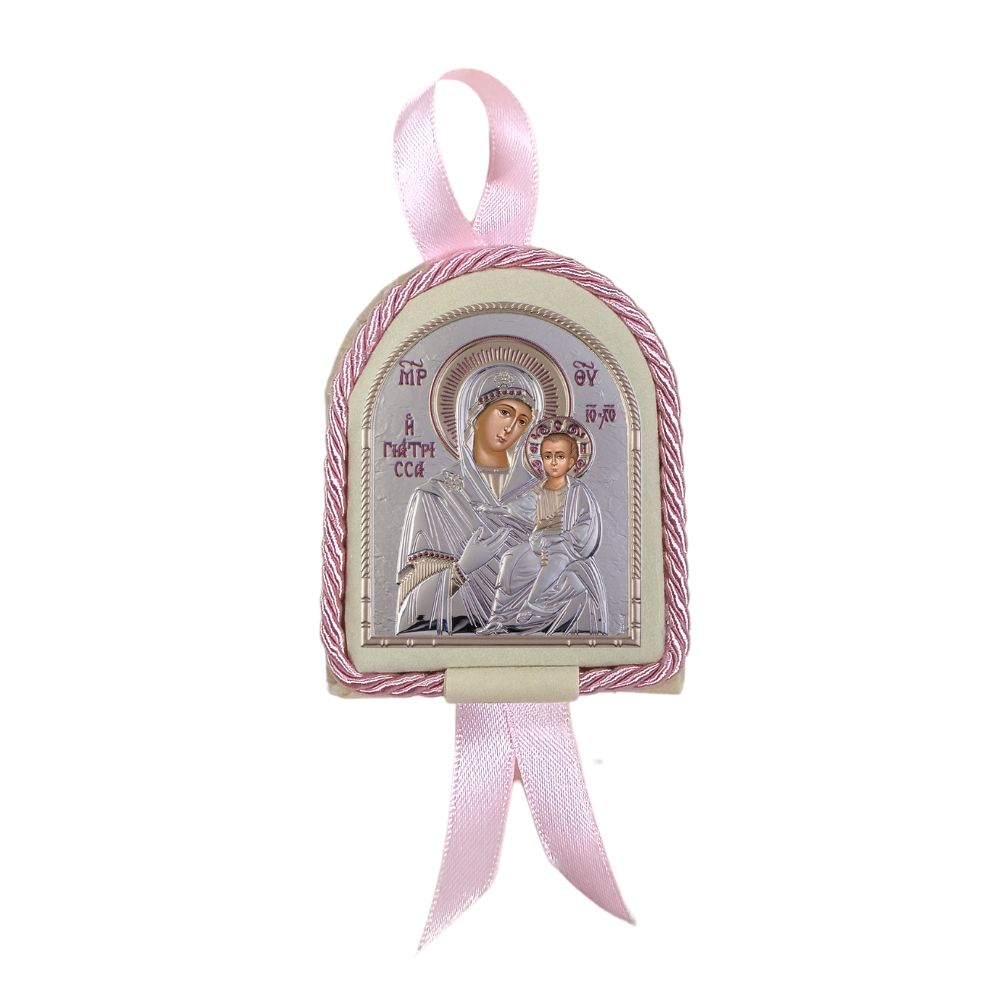 Ασημένιο παιδικό σετ 925 Ελεφαντάκι και πεταλούδα και εικόνα κούνιας με την Παναγία την Γιάτρισσα.