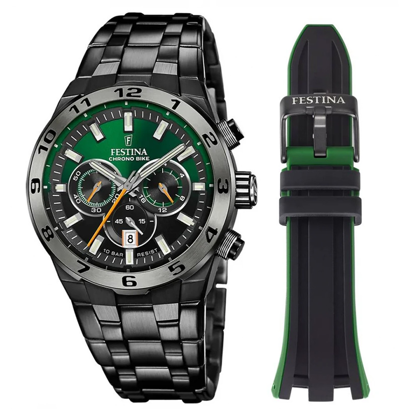 Festina Chrono Bike, Special Edition Box Set, Men's Watch, Green &Black Silicone Strap F20673/2
