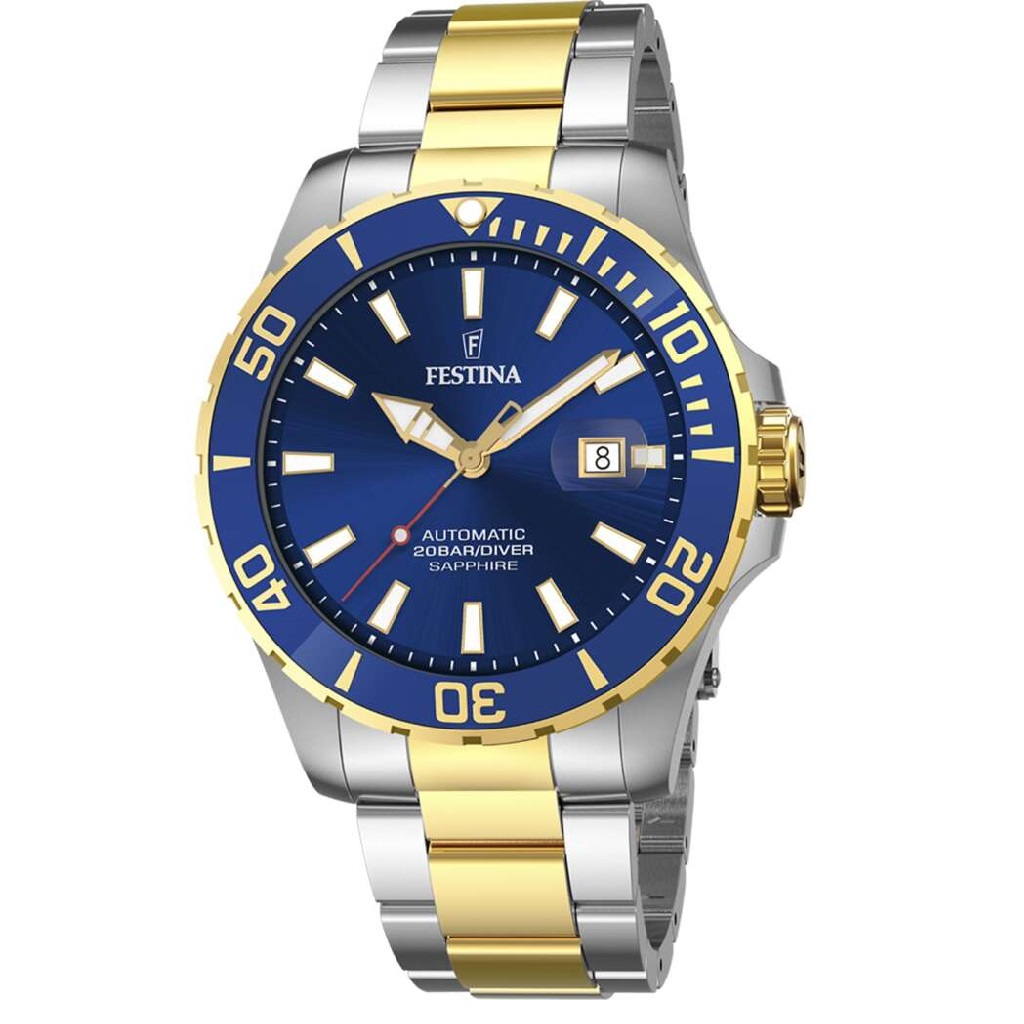 Κάσα: Μπλε ανοξείδωτο ατσάλι με κίτρινες χρυσές λεπτομέρειες