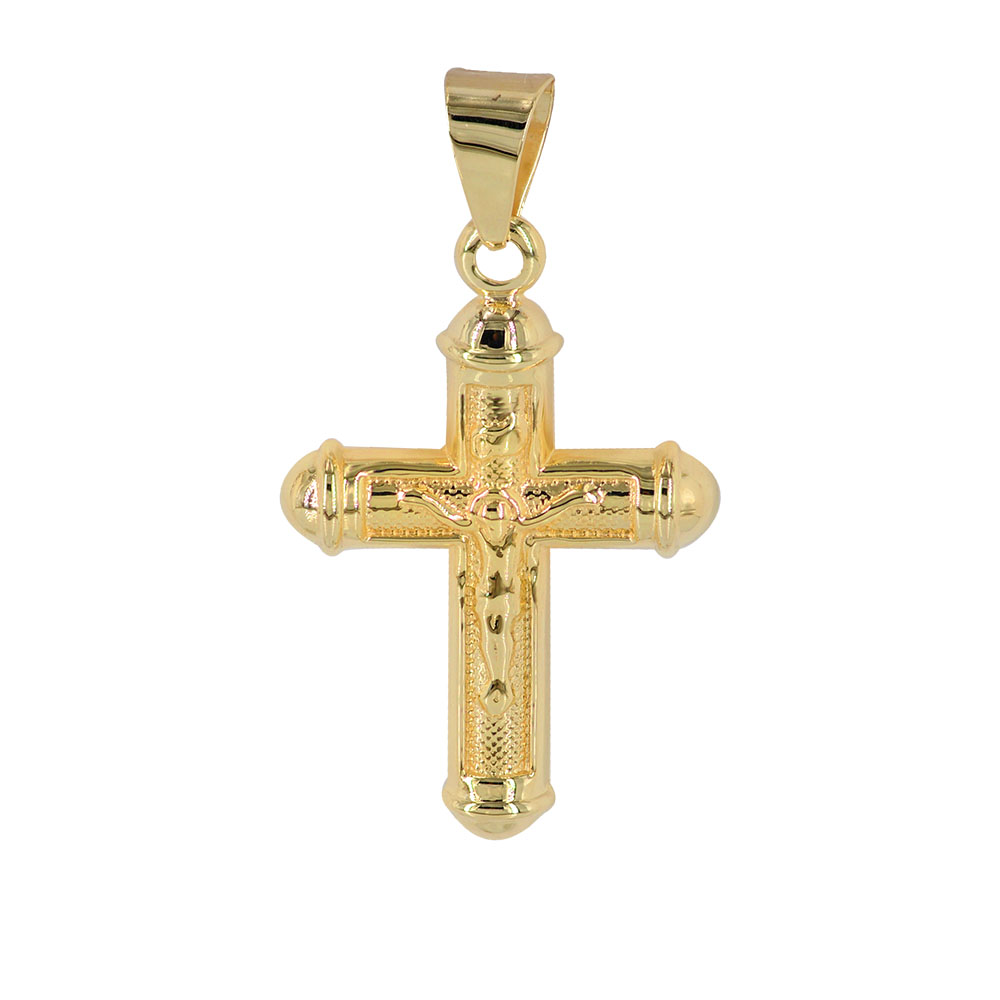Διπλός σταυρός από επιχρυσωμένο ασήμι 925° με σχέδιο έγκυο γυναίκα.