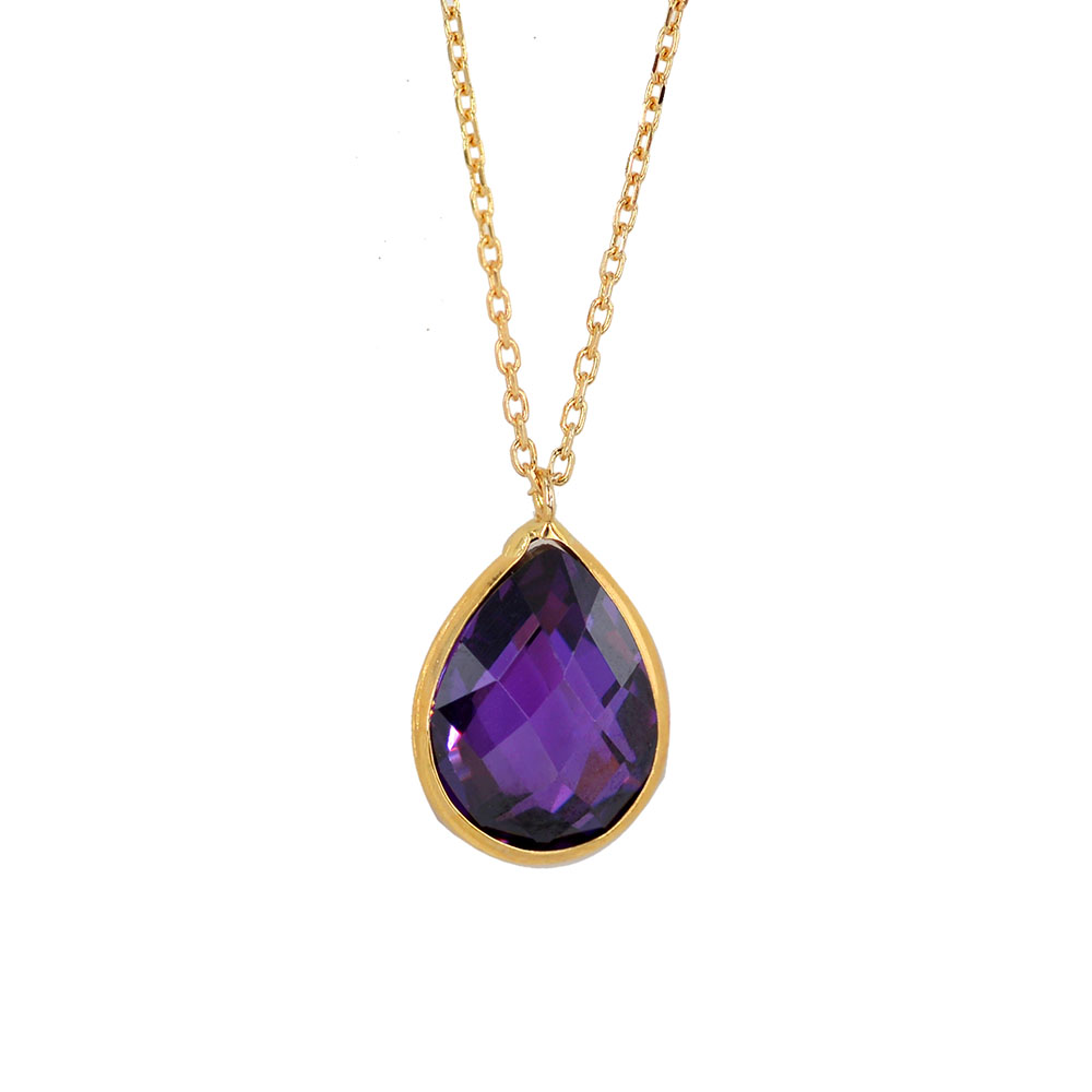 Λευκόχρυσο κολιέ 14 Καρατίων, μονόπετρο με μοτίφ δάκρυ και χρώμα χρώμα πέτρας κόκκινο.