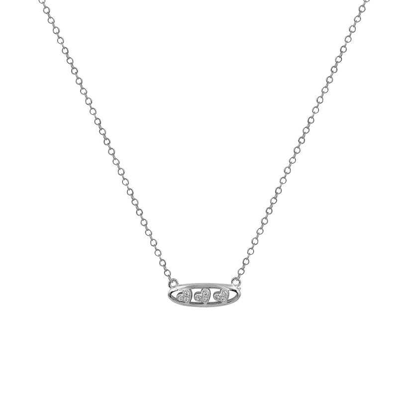 Ασημένιο κολιέ 925, καρδιά διαμοσμημένη με λευκές πέτρες ζιργκόν