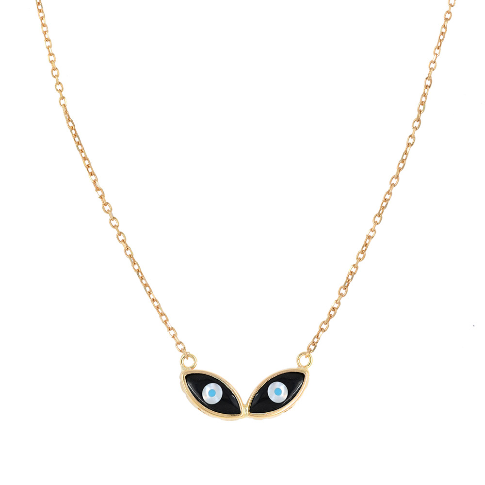 Χρυσό κολιέ 9 Καρατίων με δύο ματάκια μαύρα φίλντισι.