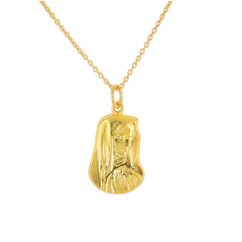 Ασημένιο 925 κολιέ με κίτρινο επιχρύσωμα, με τη μορφή της Παναγίας.