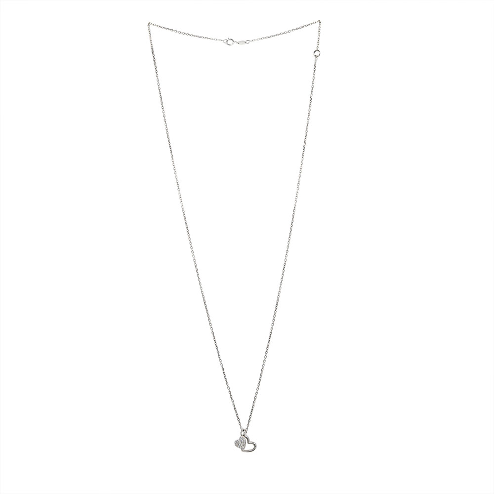 Λευκόχρυσο κολιέ 14 Καρατίων σε σχήμα καρδίες. Την μία καρδιά στολίζουν διαμάντια.
