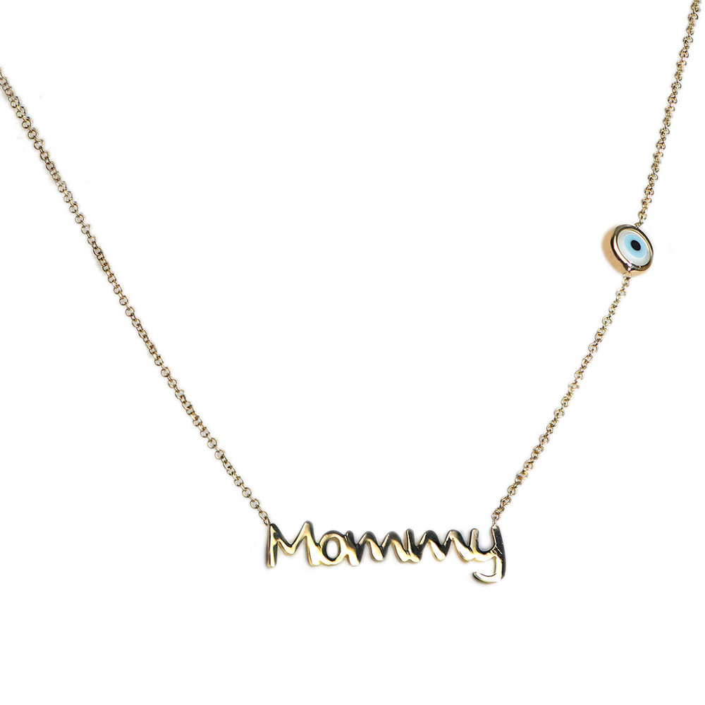 Χρυσό κολιέ 9 Καρατίων με τη λέξη Mommy και ένα ματάκι. Ιδανικό δώρο για μητέρες.
