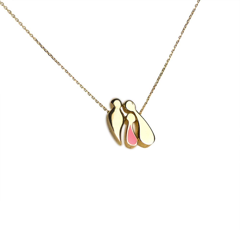 Χρυσό κολιέ 14 Καρατίων οικογένεια, ενα αγοράκι με μπλέ σμάλτο.