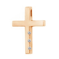Χρυσός σταυρός Τριάντος, 14 Καρατίων, γυναικείος, με λουστρέ φινίρισμα και τρία λευκά ζιργκόν Swarovski στην κάθετη πλευρά του.