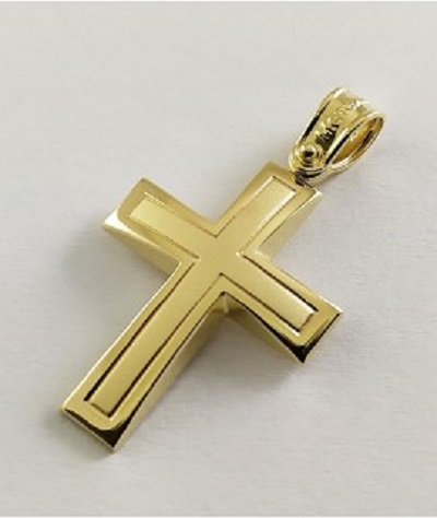 Χρυσός σταυρός 14 Καρατίων, με ματ και λουστρέ φινίρισμα.