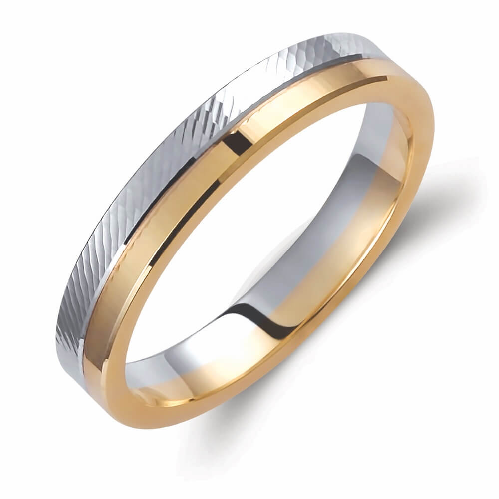 Χρυσή βέρα γάμου και αρραβώνα Valauro 8 καρατίων και πλάτος 3.5mm, δίχρωμη, με λουστρέ επιφάνεια, σε διαχρονική γραμμή.