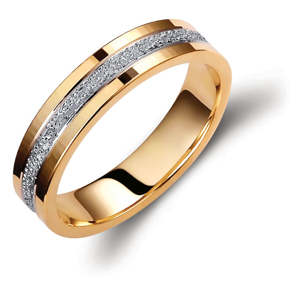 Χρυσή βέρα γάμου και αρραβώνα Valauro 8 καρατίων και πλάτος 4mm, δίχρωμη με διαμανταριστό φινίρισμα.