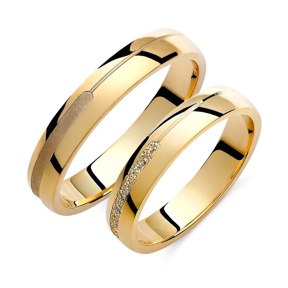Χρυσή βέρα γάμου και αρραβώνα Valauro 8 καρατίων και πλάτος 4mm, με λουστρέ φινίρισμα και ματ σχέδιο.
