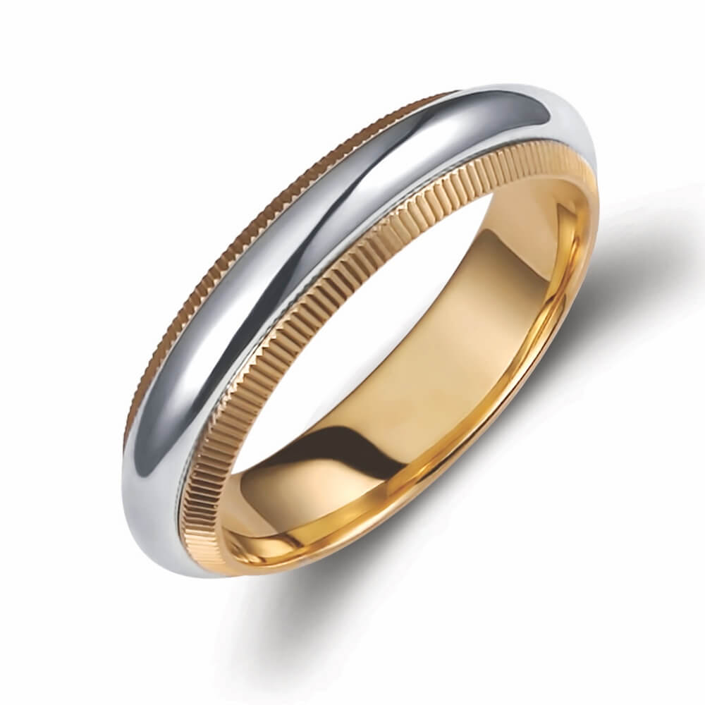 Χρυσή βέρα γάμου και αρραβώνα Valauro 8 καρατίων και πλάτος 4.5mm, δίχρωμη, με λουστρέ επιφάνεια, σε διαχρονική γραμμή.