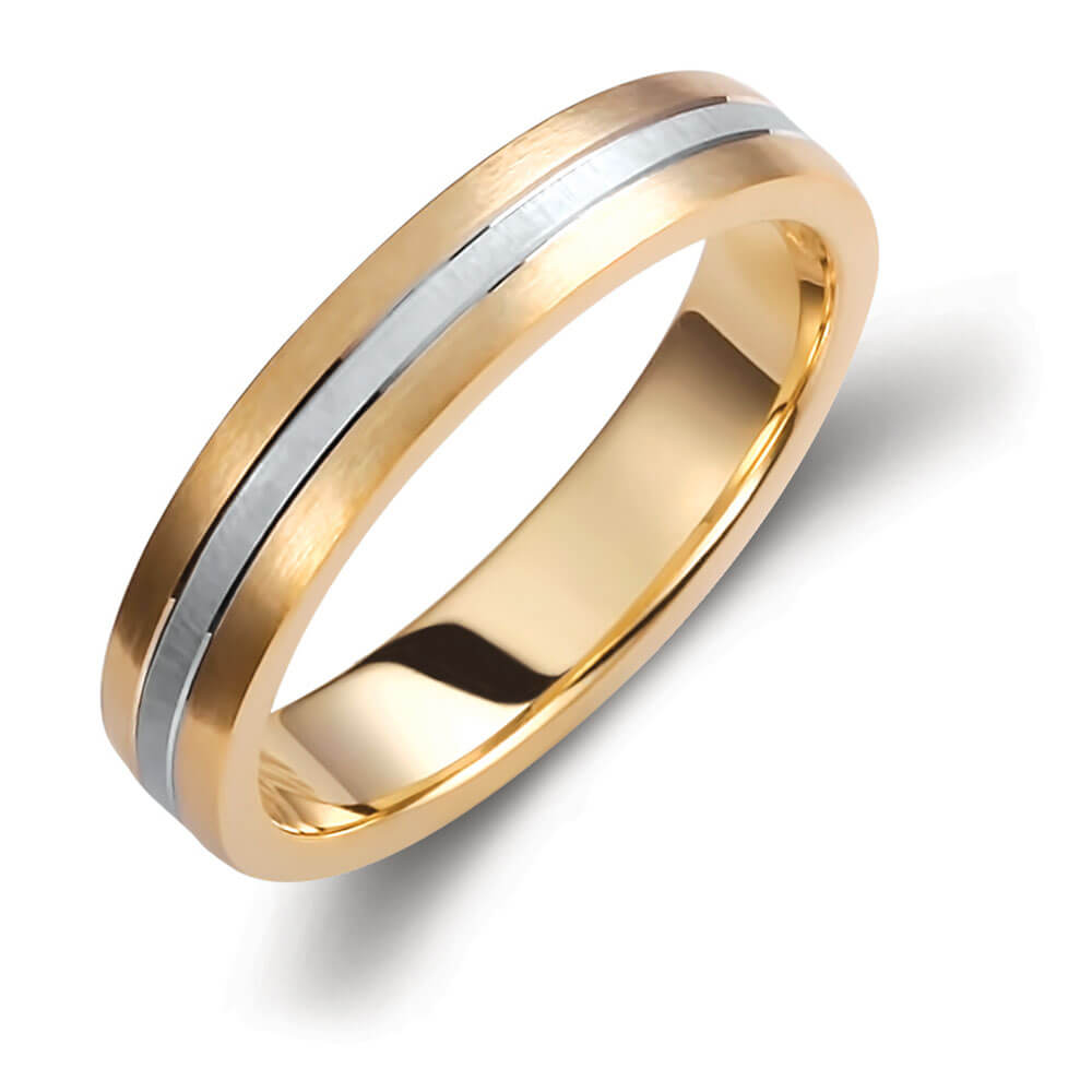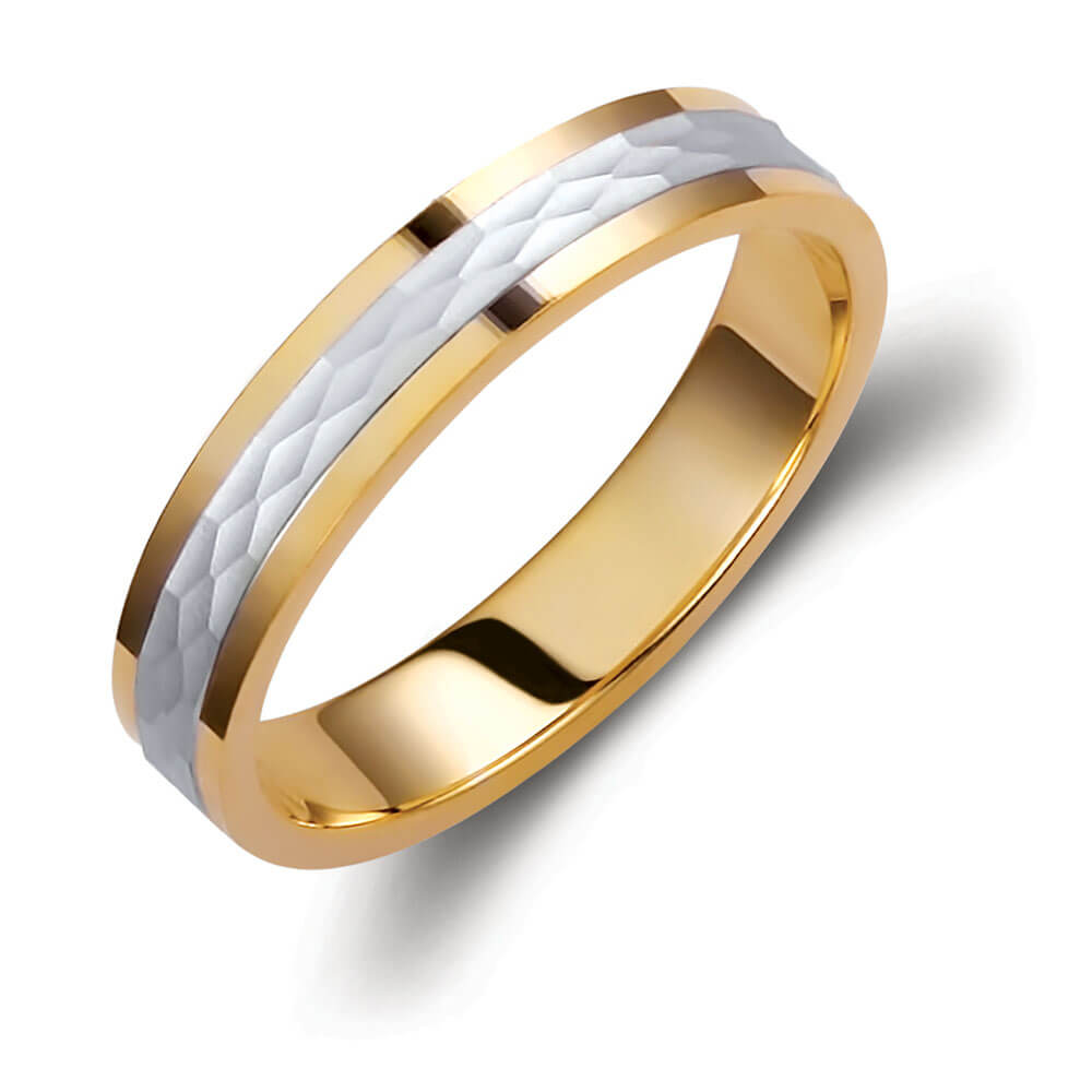 Χρυσή βέρα γάμου και αρραβώνα Valauro 8 καρατίων και πλάτος 4mm, δίχρωμη, με ματ φινίρισμα και ανάγλυφη επιφάνεια, σε εντυπωσιακή και διαχρονική γραμμή.