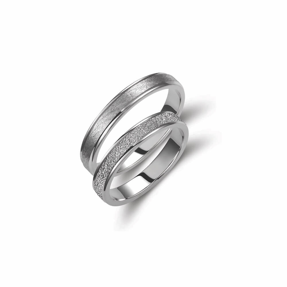 Λευκόχρυση βέρα γάμου και αρραβώνα Valauro 8 καρατίων και πλάτος 3.5mm, λουστρέ στις άκρες και διαμανταριστό φινίρισμα στη μέση.