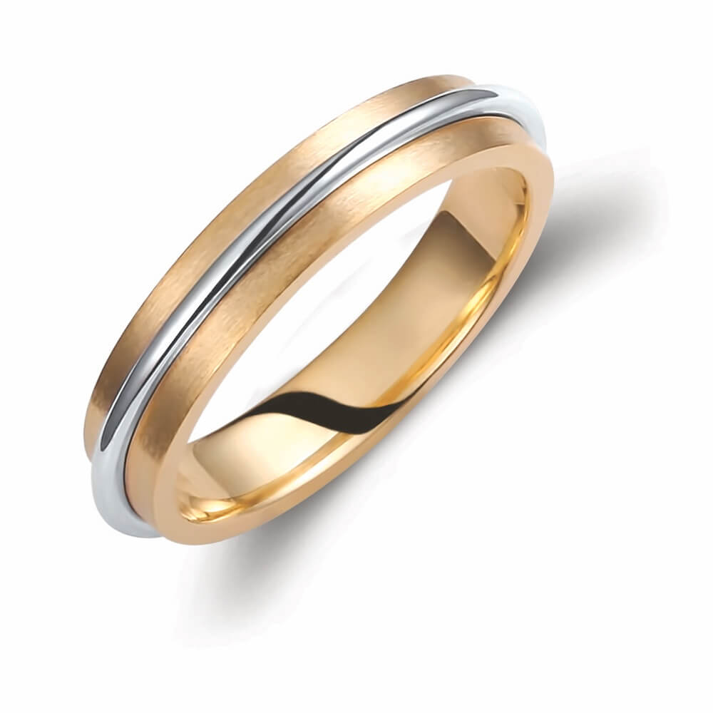 Δίχρωμη βέρα γάμου και αρραβώνα Valauro 8 καρατίων και πλάτος 5mm, λευκή και κίτρινο, λουστρέ σε διαχρονική γραμμή.