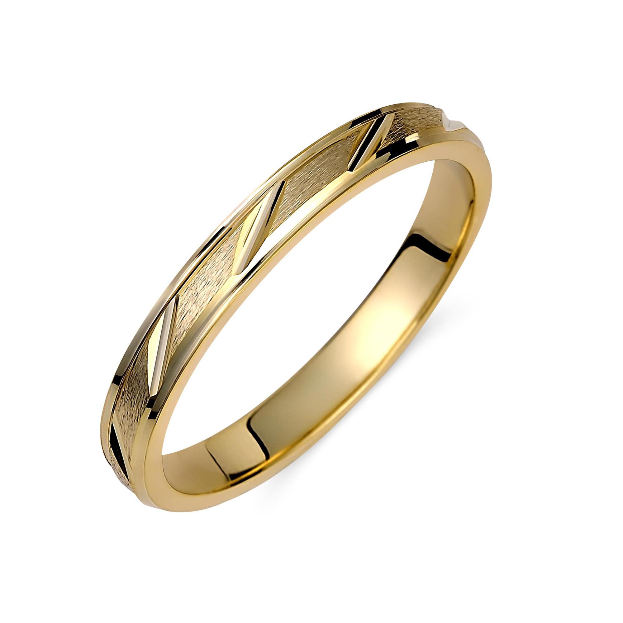 Χρυσή βέρα γάμου και αρραβώνα Valauro 8 καρατίων και πλάτος 3mm, σαγρέ, με περίτεχνο σχέδιο.