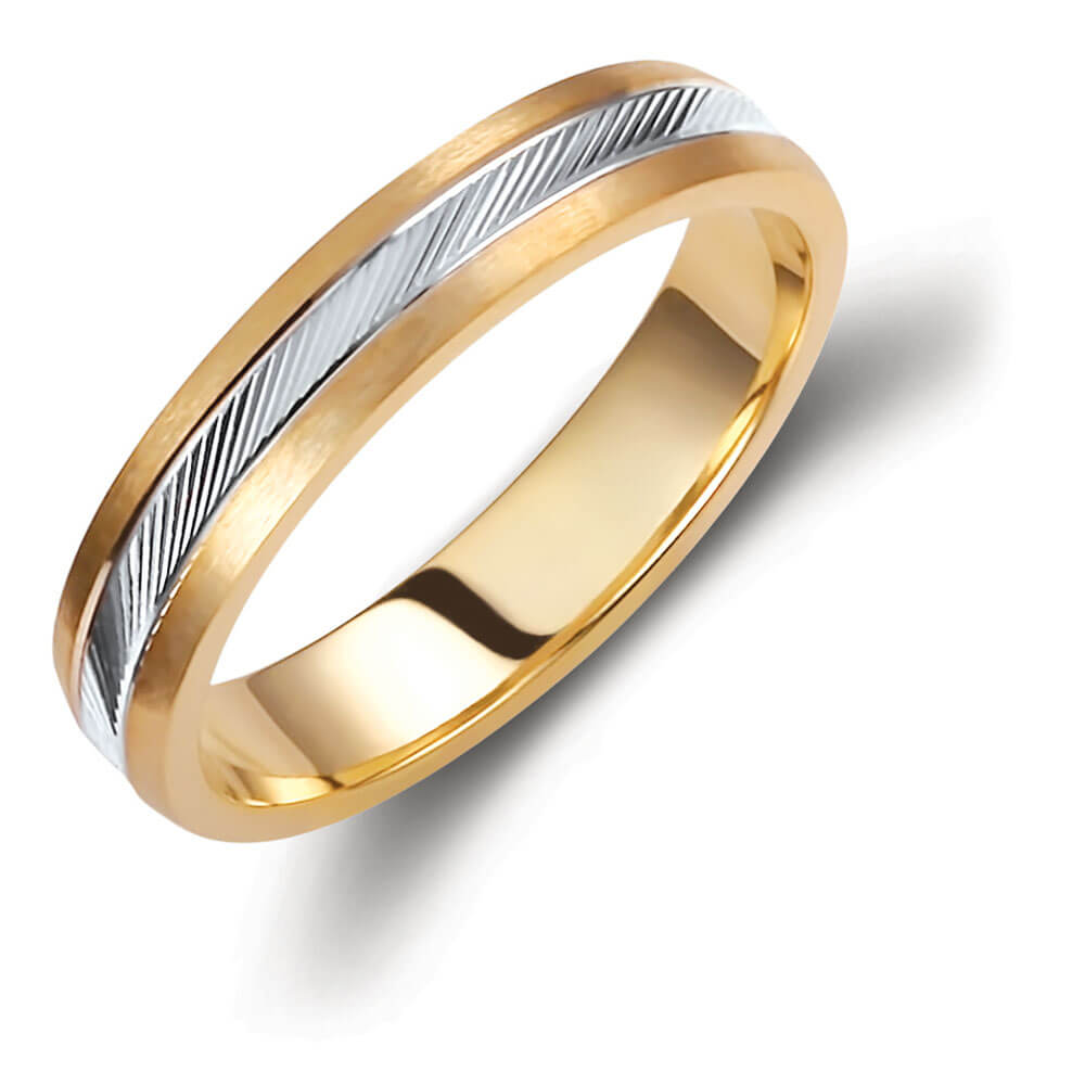 Χρυσή βέρα γάμου και αρραβώνα Valauro 8 καρατίων και πλάτος 3.5mm, δίχρωμη, με δυο διαφορετικά φινιρίσματα, σε κομψή και διαχρονική γραμμή.