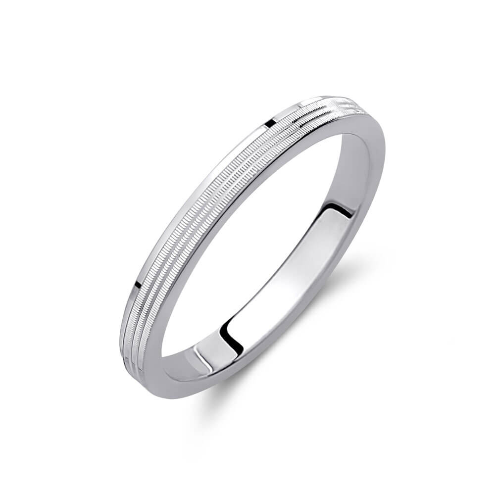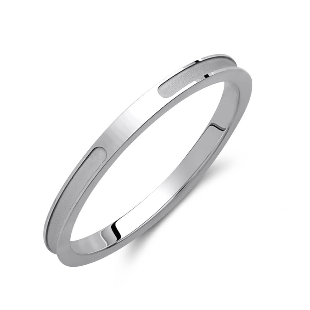Λευκόχρυση βέρα γάμου και αρραβώνα Valauro 8 καρατίων και πλάτος 2mm, σε κομψή γραμμή, με λεπτομέρειες από ματ φινίρισμα