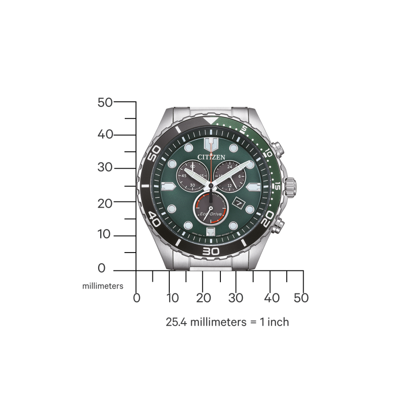 Επιπλέον λειτουργίες: Ημερομηνία, Χρονογράφος, Ένδειξη ώρας σε 24ωρη βάση, Μηχανισμός ηλιακής φόρτισης Eco-Drive με αυτονομία έως 150 μέρες, Ένδειξη χαμηλής στάθμης φόρτισης.