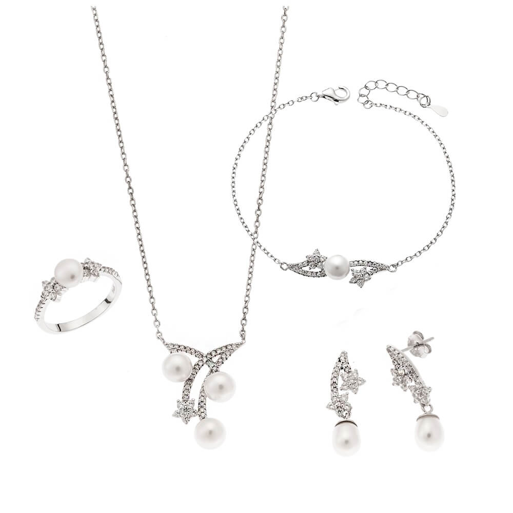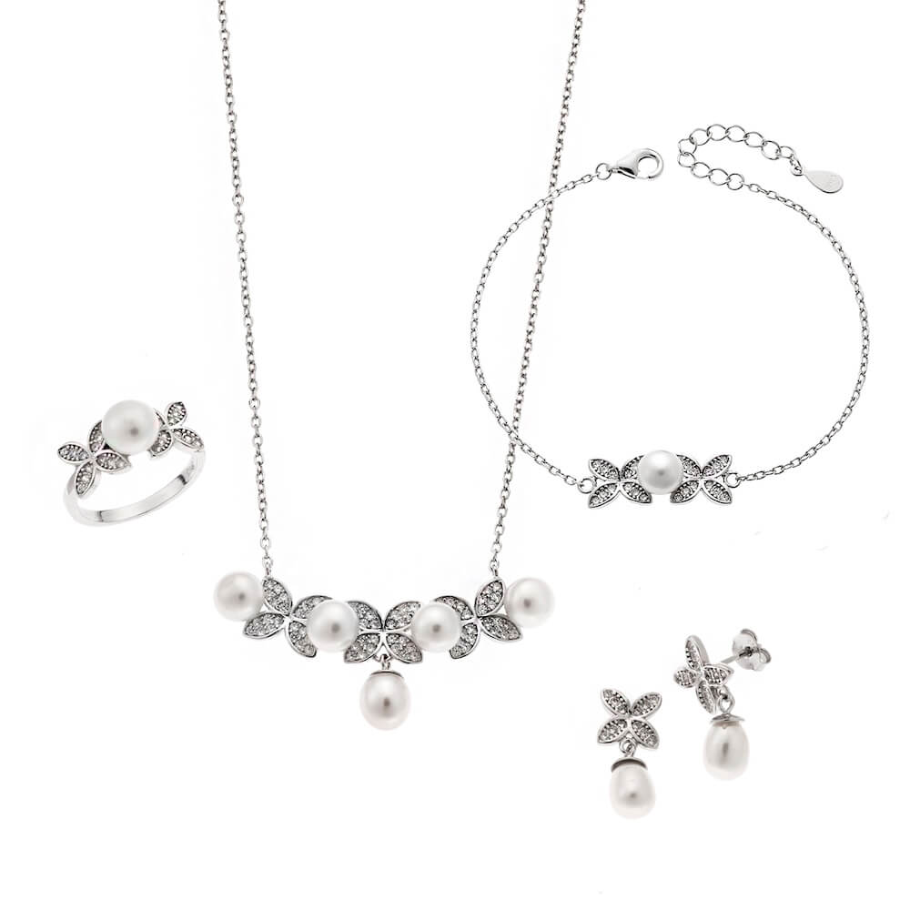 Σετ Ασημένιο 925°,  με περίτεχνο σχέδιο απο ζιργκόν και πέρλες.