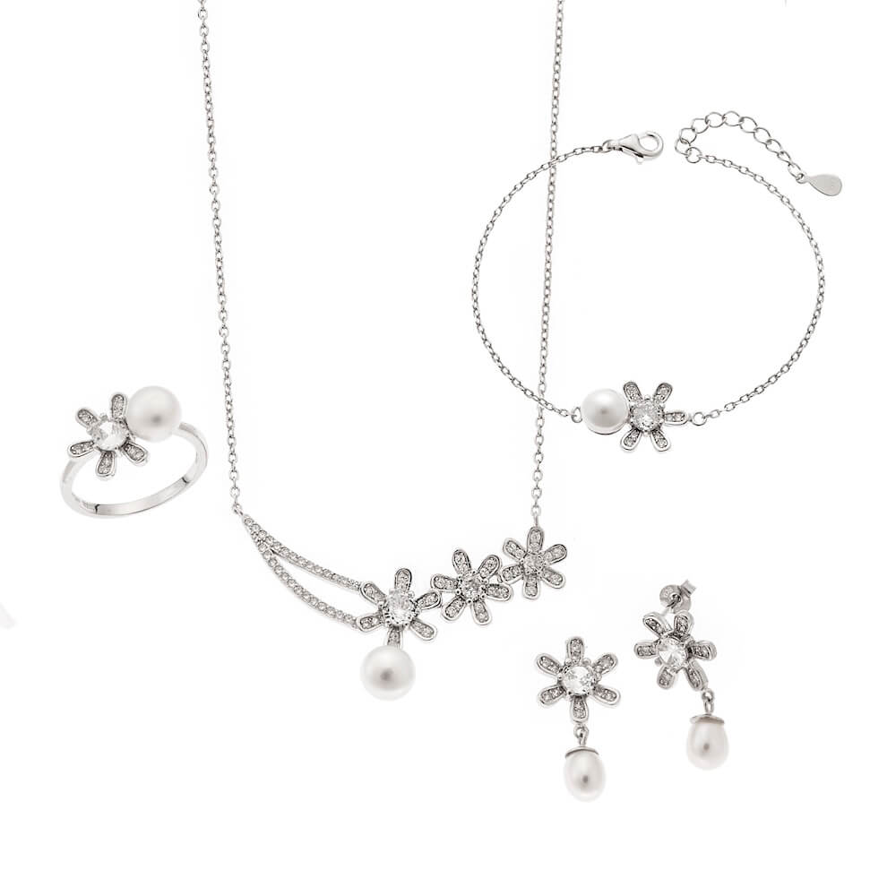 Σετ Ασημένιο 925°,  με περίτεχνο σχέδιο απο ζιργκόν και πέρλες.