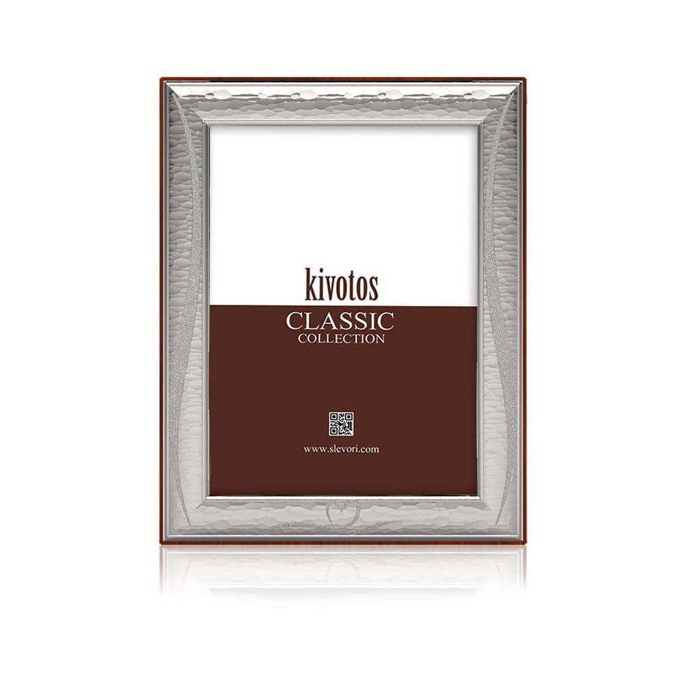 Κορνίζα από ασήμι 925, Slevori, σε ορθογώνιο σχήμα με εφέ "τσαλακώματος"  και ξύλινη πλάτη σε καφέ χρώμα.
