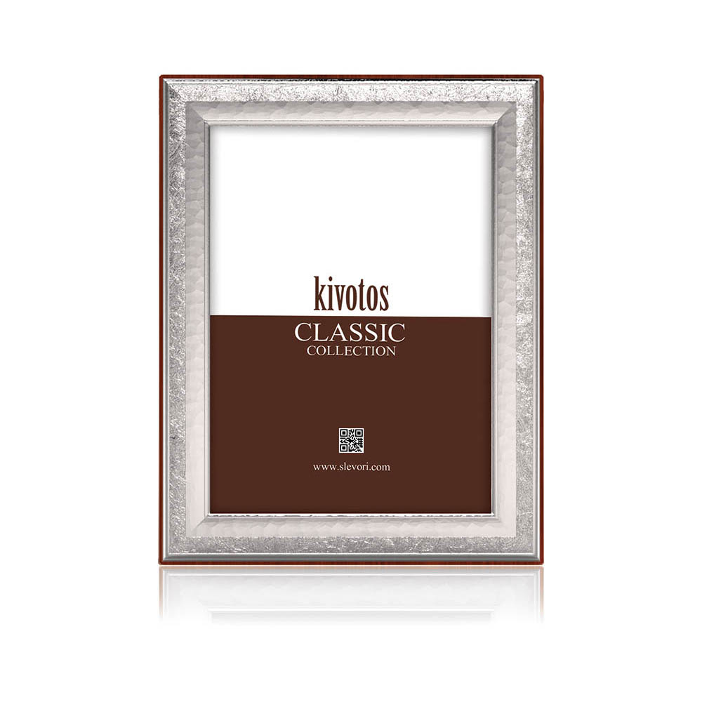 Κορνίζα από ασήμι 925, Slevori, σε ορθογώνιο σχήμα με σφυρήλατο φινίρισμα και σαγρέ και ξύλινη πλάτη σε καφέ χρώμα.