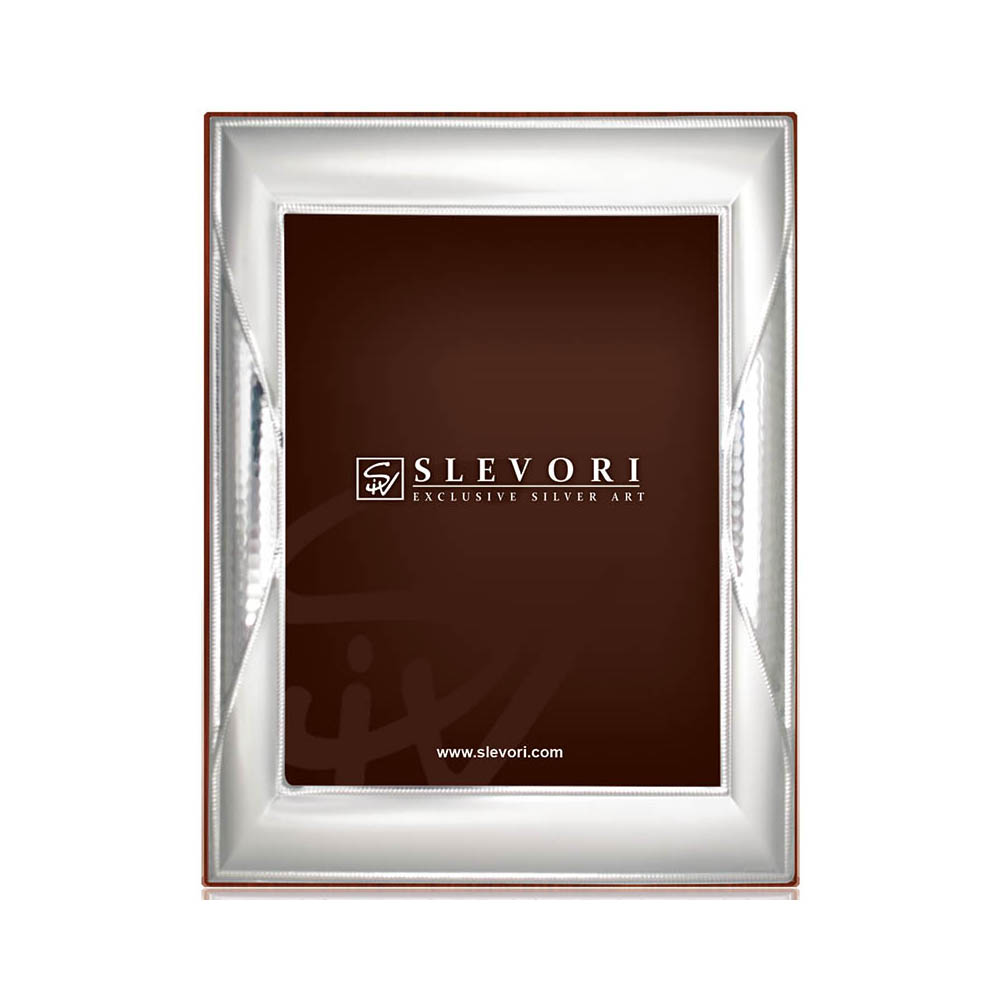 Κορνίζα από ασήμι 925, Slevori, με ματ φινίρισμα και σφυρήλατες λεπτομέρειες. Η πλάτη είναι ξύλινη σε καφέ χρώμα.