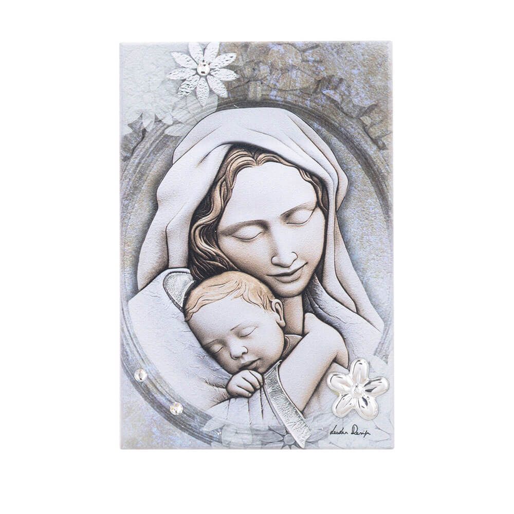 Μια υπέροχη απεικόνιση της Παναγίας της Βρεφοκρατούσας πάνω σε ξύλο με τη μέθοδο της νωπογραφίας ή αλλιώς ''Fresco''.Τα χρώματα, τοποθετούνται επάνω στο κονίαμα του ξύλου, όσο είναι ακόμα νωπό. Με διακριτικές λεπτομέριες απο ασήμι και Swarovski. Είναι μια ιδιαίτερη και μοντέρνα επιλογή δώρου για τα αγαπημένα σας πρόσωπα.