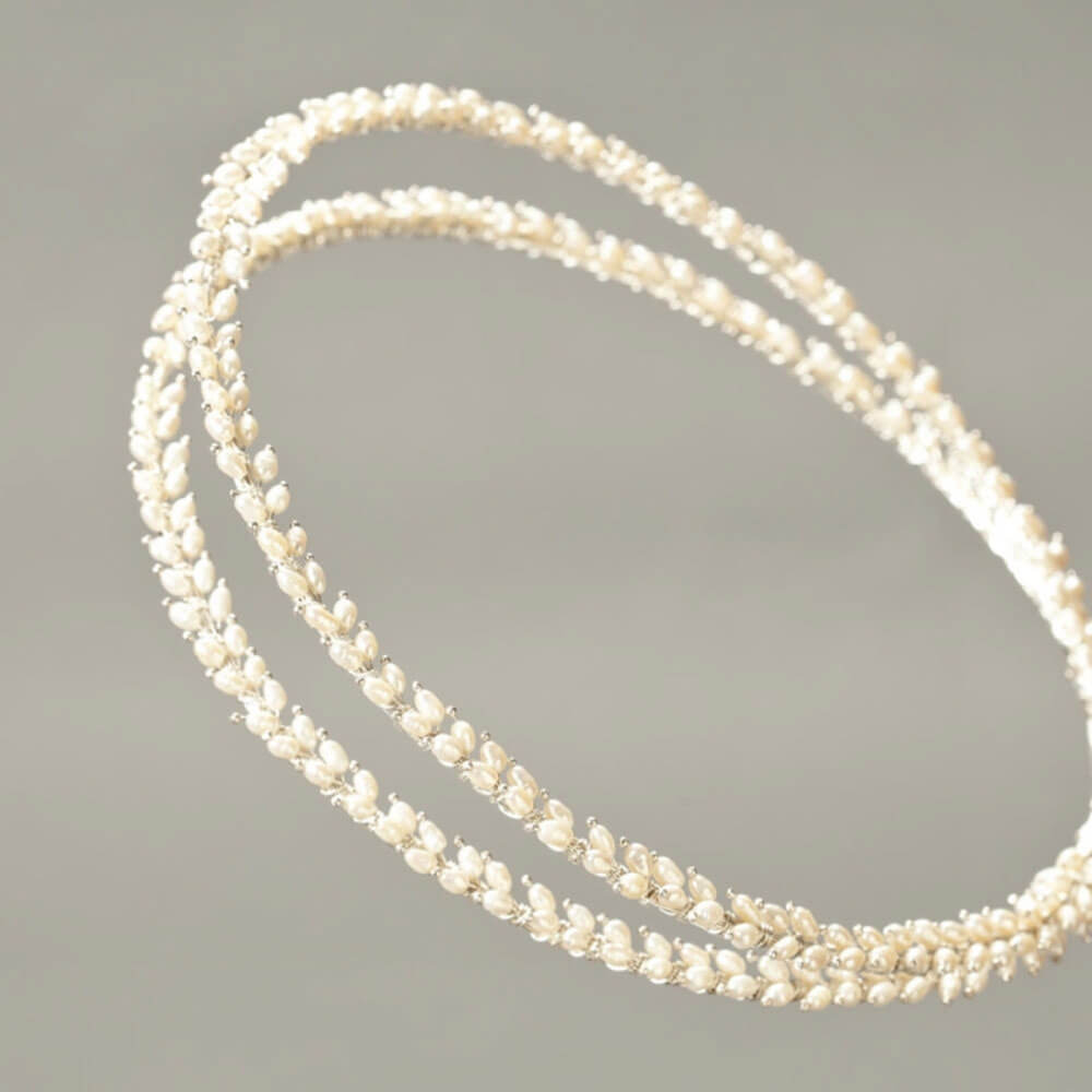 Χειροποίητα στέφανα γάμου από ασήμι 925° με μοναδικό χειροποίητο σχέδιο ιδιαίτερης αισθητικής με φυσικά καλλιεργημένα μαργαριτάρια.