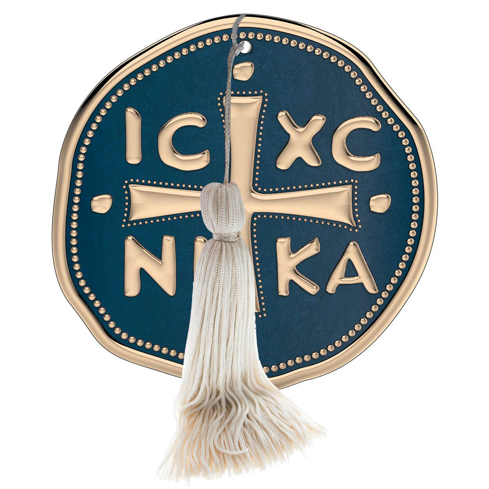 Γούρι επιτραπέζιο σε σχήμα ΙΧΝΚ με λευκή πλάτη από ξύλο.