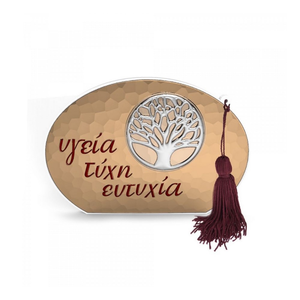 Επιτραπέζιο γούρι με το δέντρο της ζωής σε κόκκινο χρώμα και λευκή πλάτη από ξύλο. Επάνω αναγράφεται η ευχή " Υγεία - Τύχη - Ευτυχία".  Δεν υπάρχουν πιο ωραίες ευχές για να στολίζουν το σπίτι σας ή το σπίτι των αγαπημένων σας προσώπων.