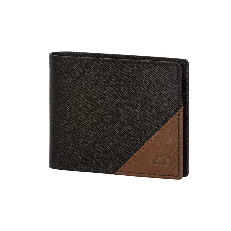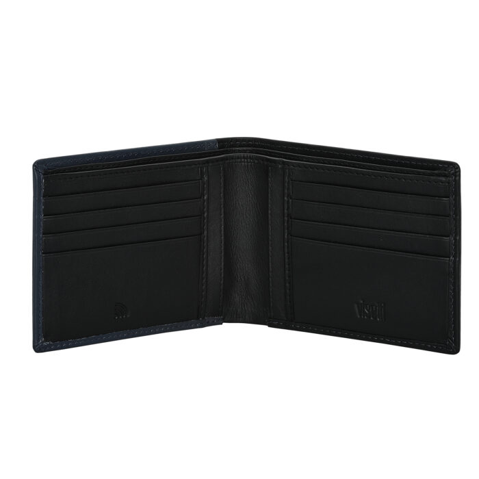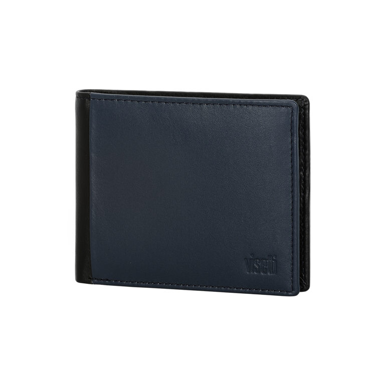Δερμάτινο πορτοφόλι σε σκούρο μπλέ χρώμα με μαύρες λεπτομέρειες, της εταιρείας Visetti.